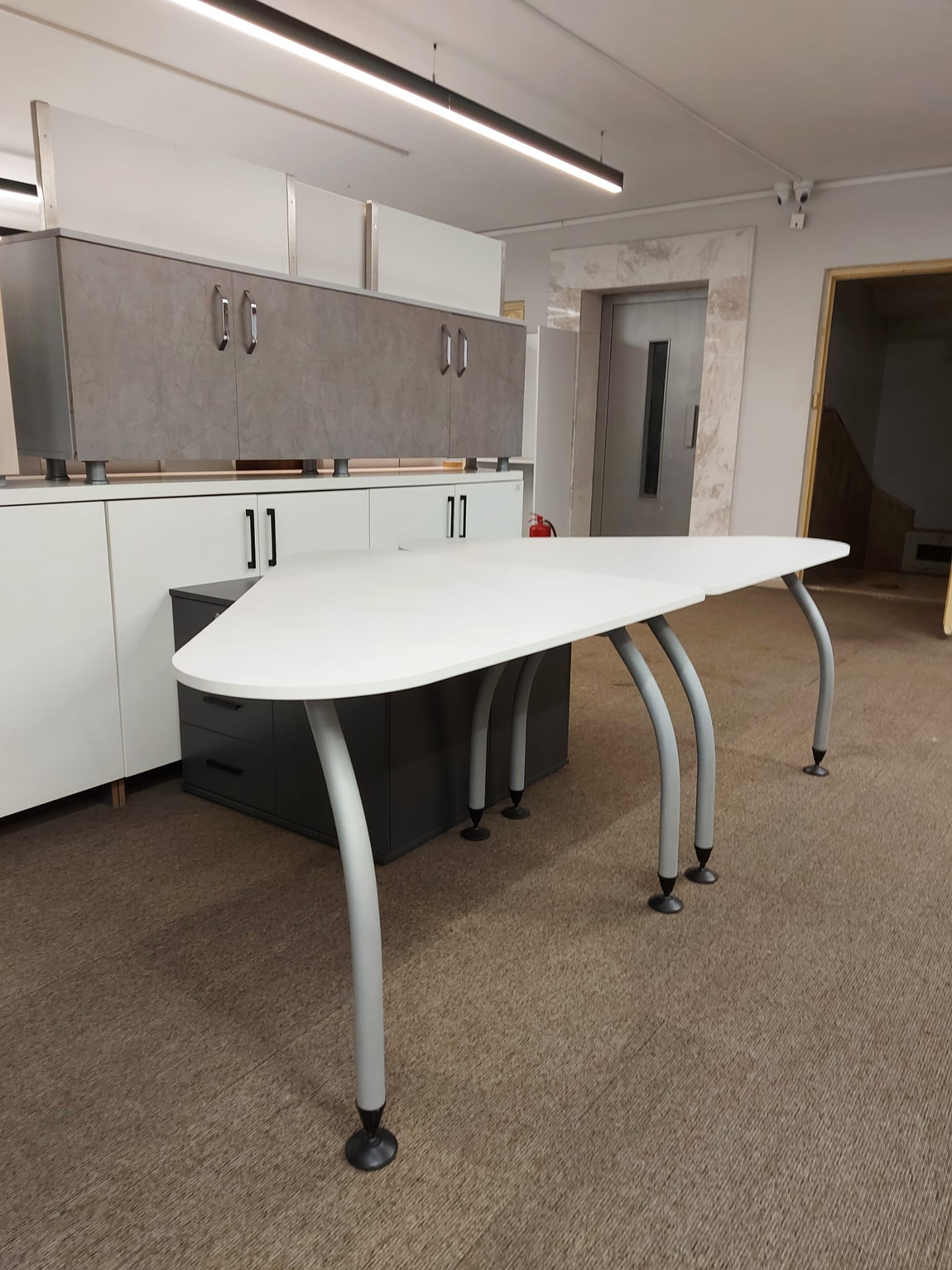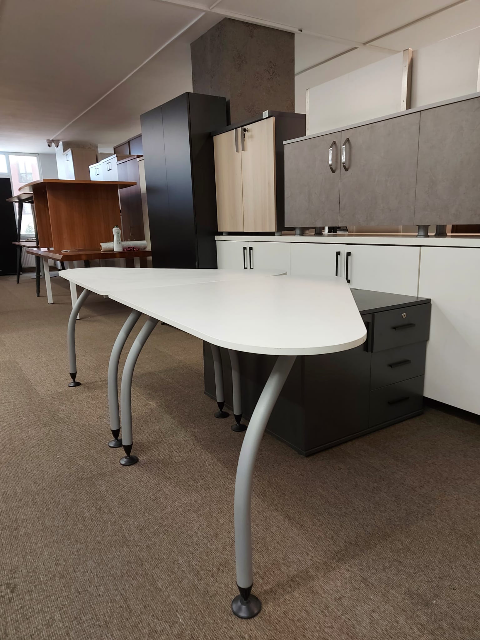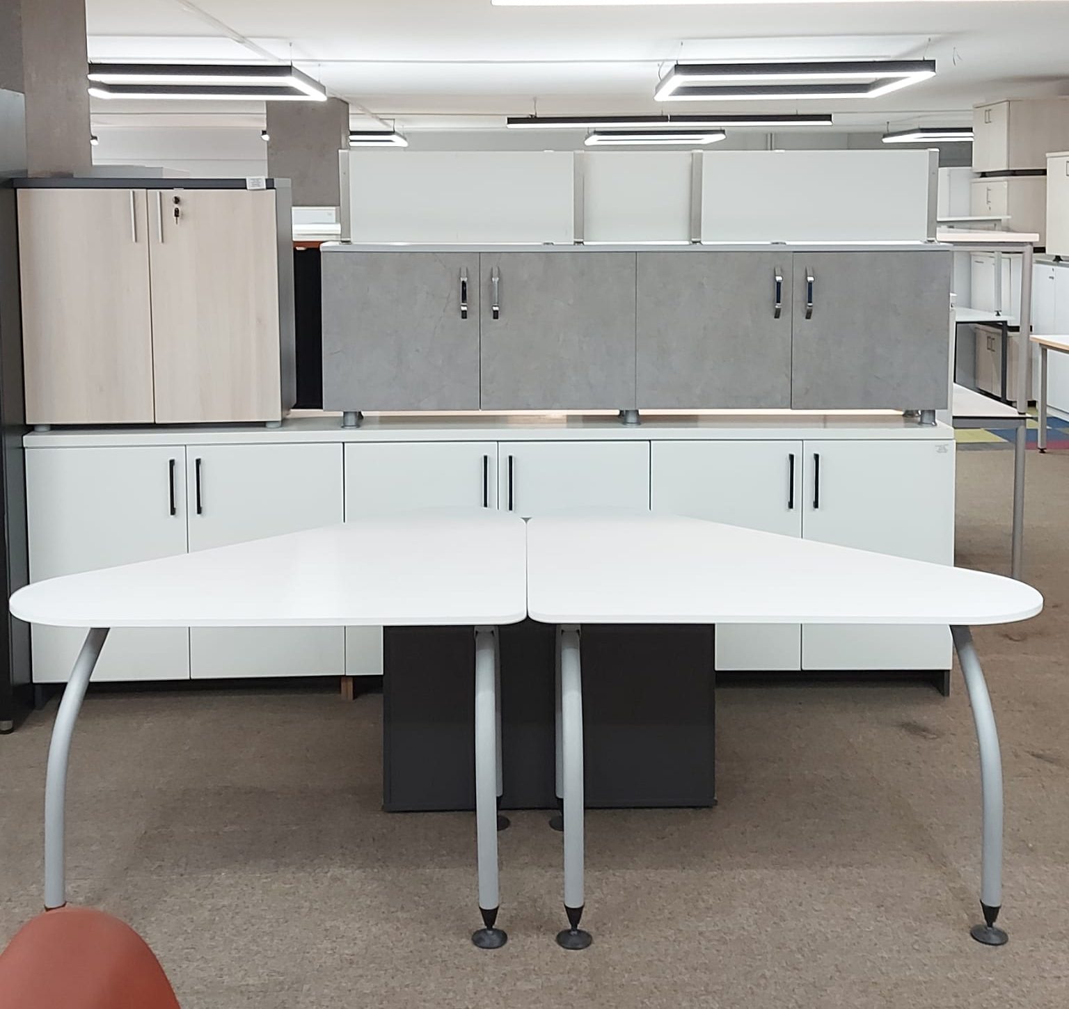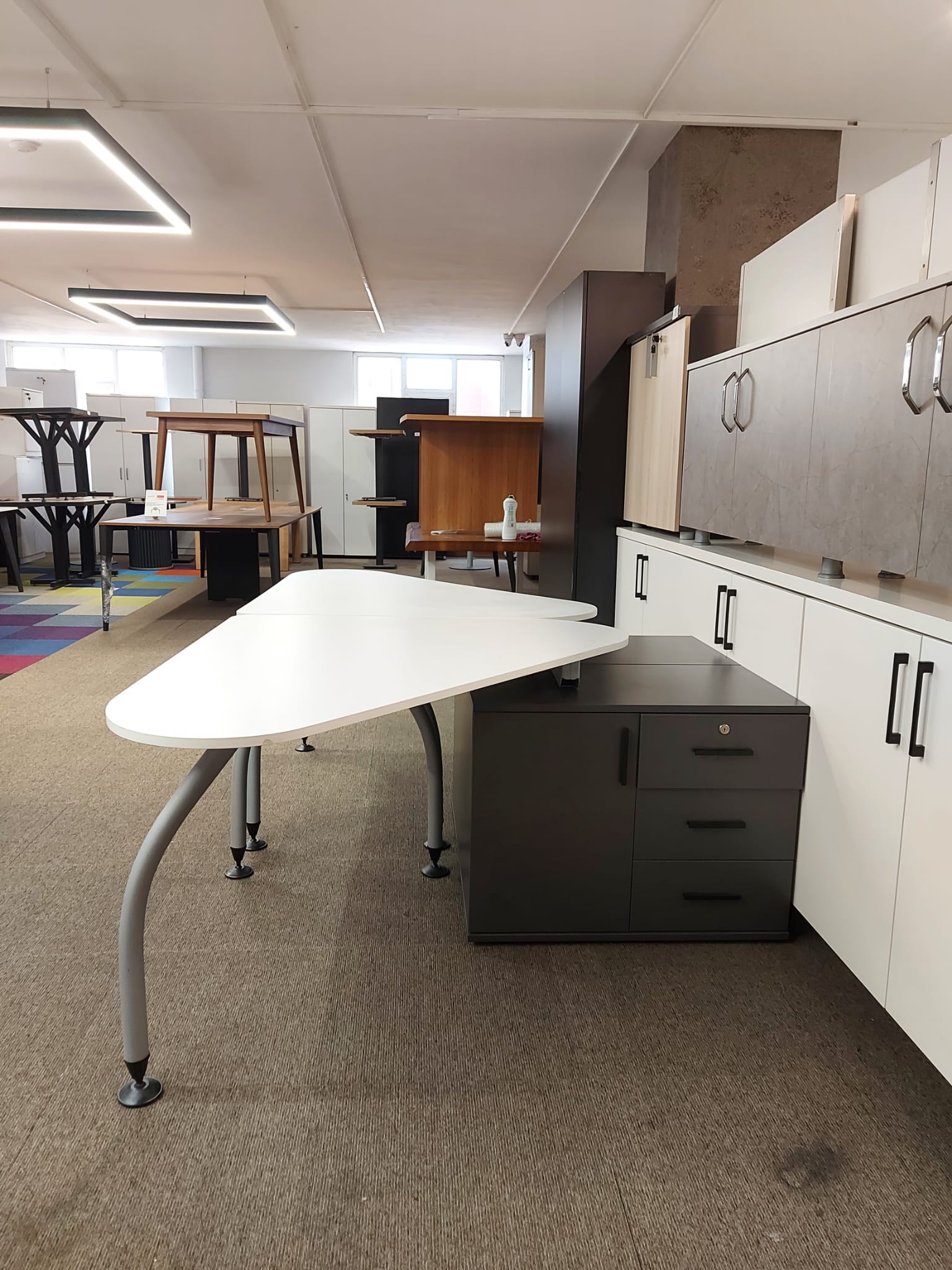 Açıklama: Ofis alanınızı en verimli şekilde kullanmanızı sağlayan, modern ve fonksiyonel çalışma gruplarıdır. 120×110 cm ölçüleri sayesinde hem bilgisayar hem de evrak trafiği için yeterli alan sunarken, mekanı daraltmaz. İster tekli, ister karşılıklı ikili, isterseniz de dörtlü takım olarak ofis yerleşiminize göre kombine edebilirsiniz. İskelet yapısı sağlam, bağlantı aparatları tam ve kondisyonu yüksek ürünlerdir.