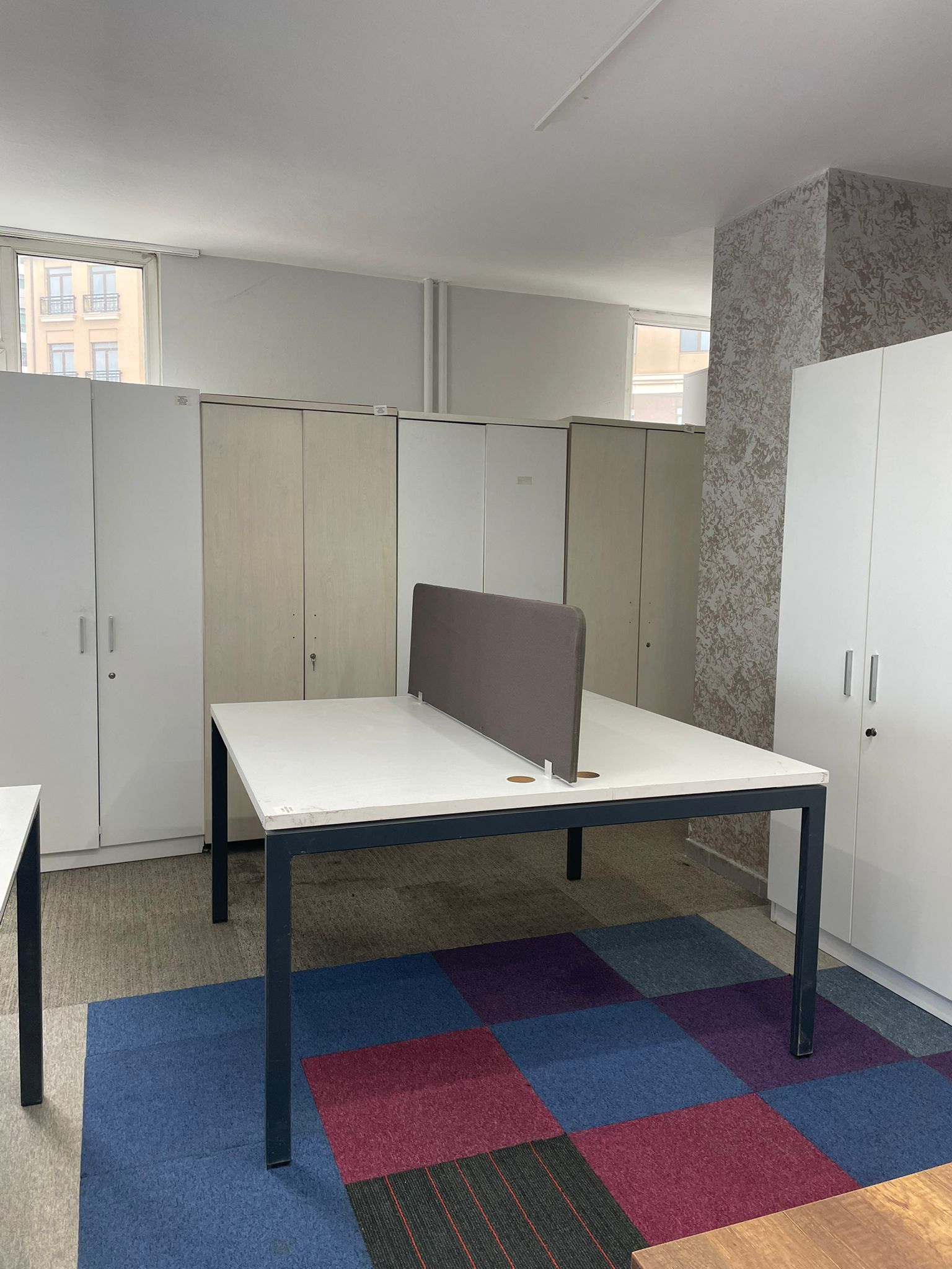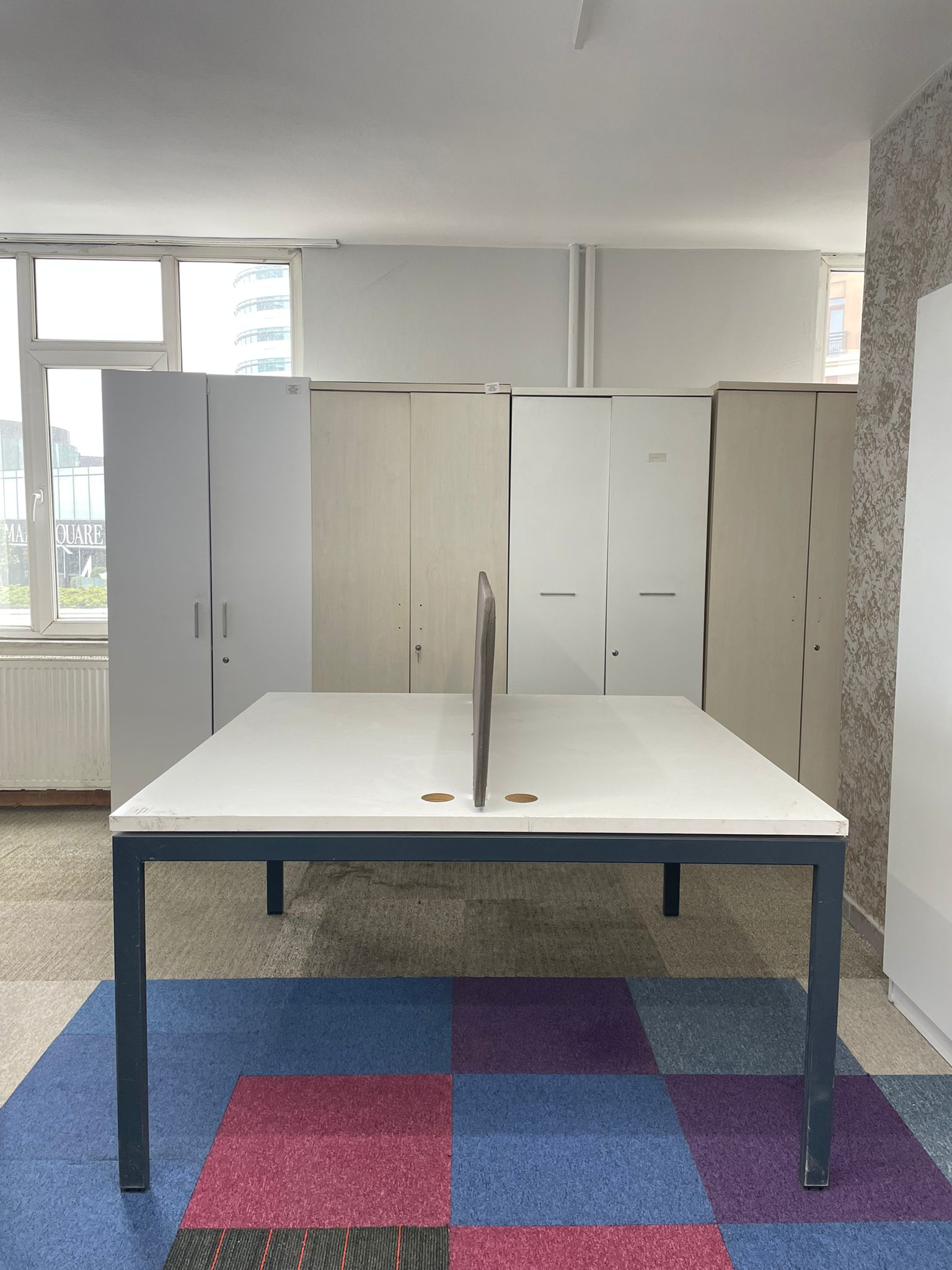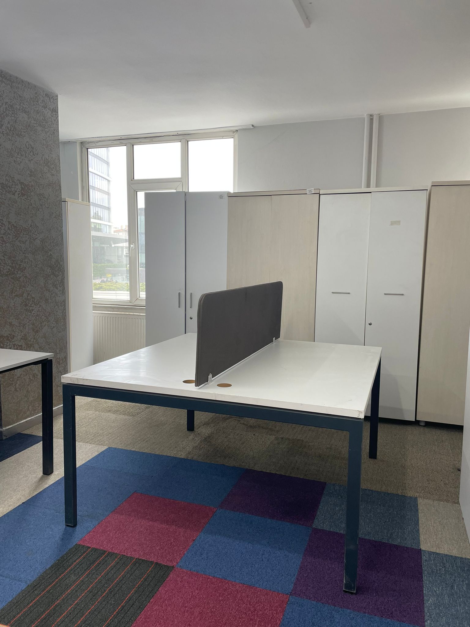 Açıklama: Verimliliği artırmak ve ofis alanını optimize etmek için tasarlanmış, karşılıklı kullanıma uygun ikili çalışma masasıdır. 140×140 cm ölçüleri ile iki personel için de geniş ve bağımsız hareket alanı sunar. Beyaz rengi ofis ortamına modern ve ferah bir görünüm katar. Kablo kanalları veya ara bölme paneli kullanımına uygun yapısıyla karmaşayı önler. Tüm parçaları eksiksiz, iskeleti sağlam ve kullanıma hazır durumdadır.