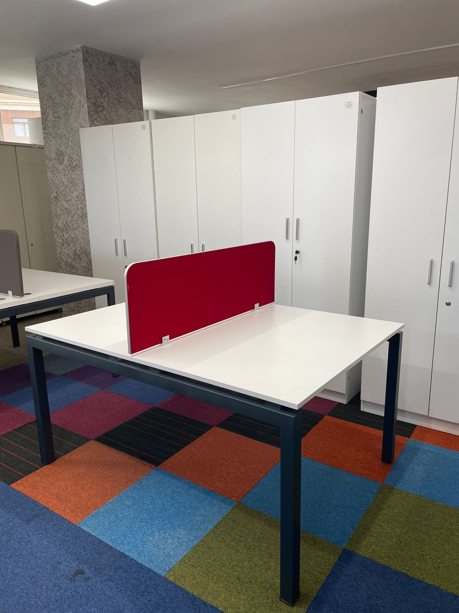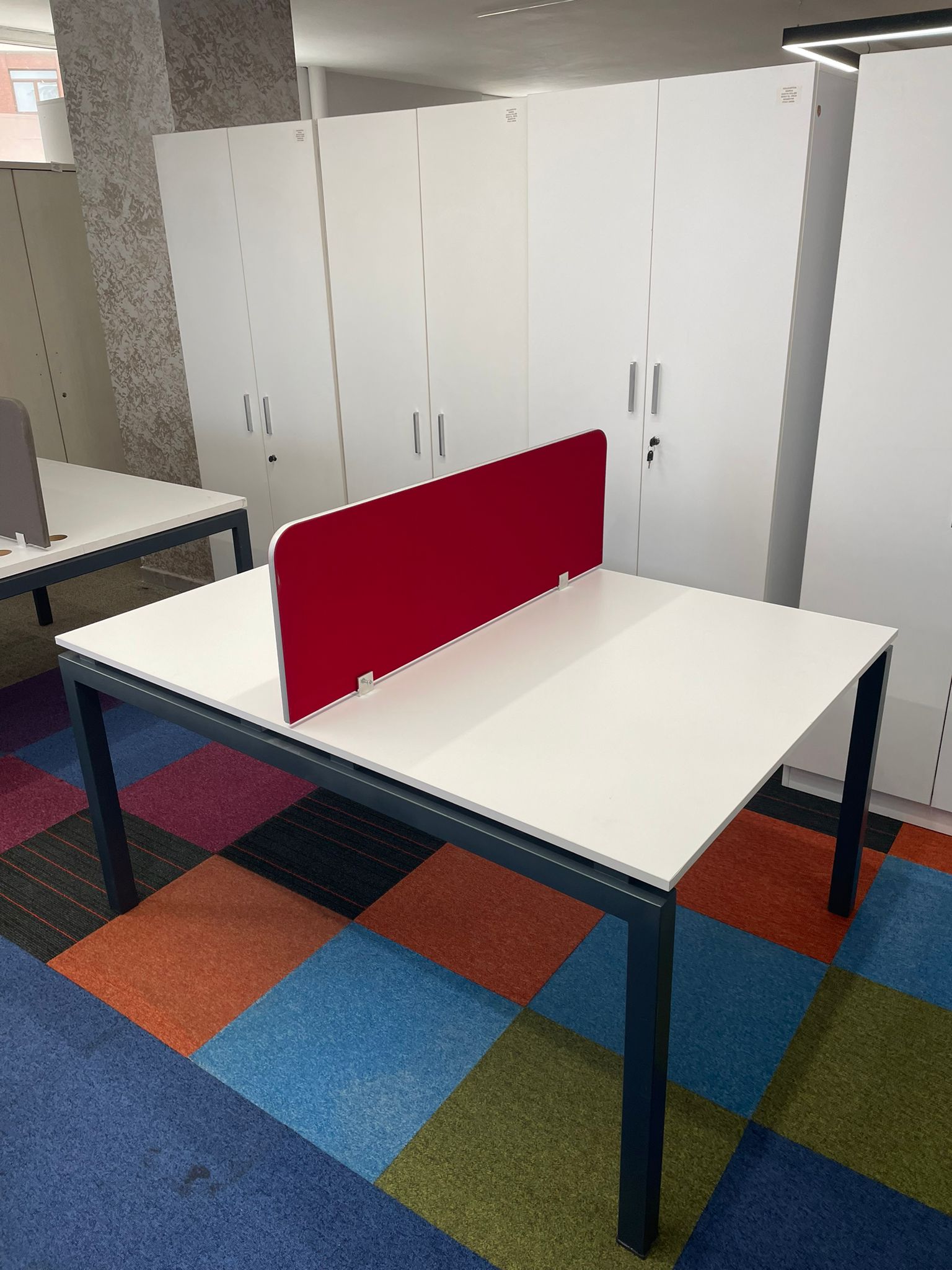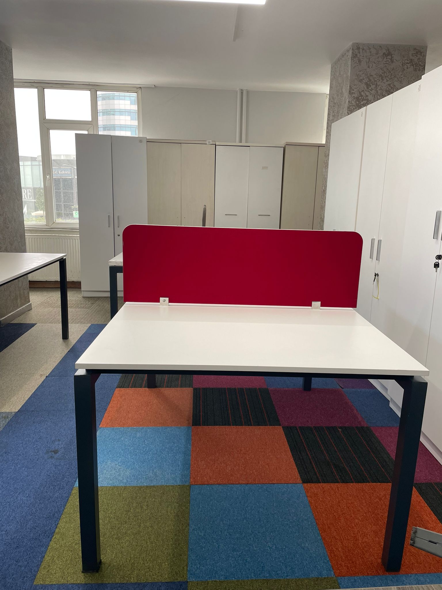 Açıklama: Kısıtlı alanlarda maksimum verim sağlamak için tasarlanmış, 150×110 cm ölçülerinde ikili çalışma grubudur. Karşılıklı veya yan yana oturma düzenine uygun yapısı ile ofis içi iletişimi desteklerken, yer tasarrufu sağlar. Bilgisayar, evrak ve diğer ofis gereçleri için yeterli çalışma alanı sunar. Sağlam iskelet yapısına sahip, tüm bağlantı parçaları eksiksiz ve kullanıma hazır durumdadır.