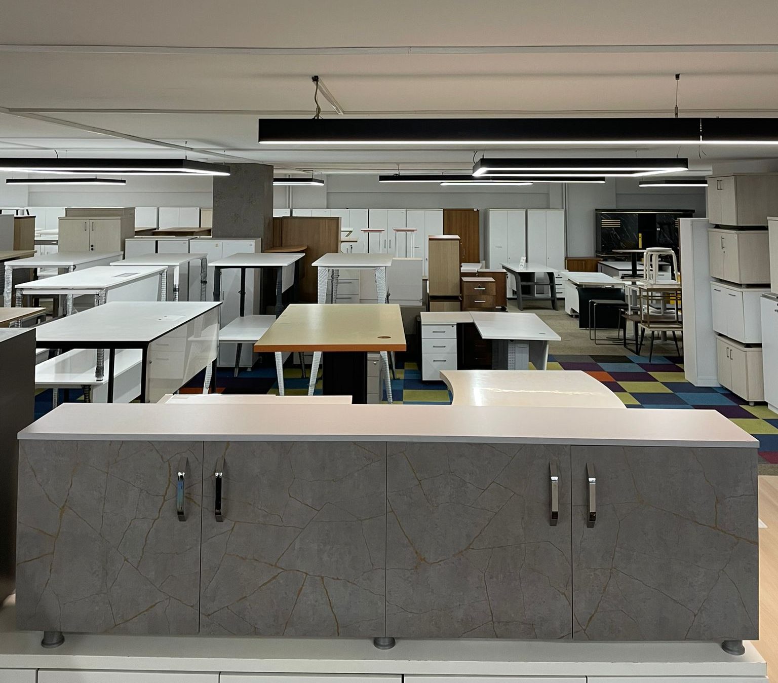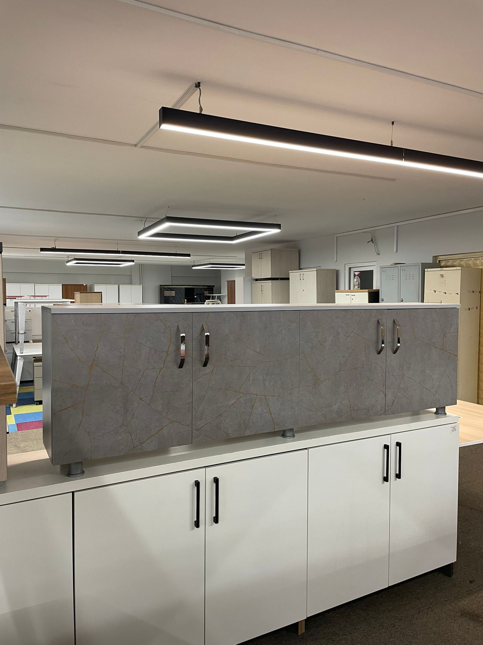 Açıklama: 200 cm genişliği ile uzun ve şık bir depolama alanı sunan, modern antrasit gri desenli konsol dolaptır. 60 cm yüksekliği sayesinde özellikle makam masalarının arkasında veya pencere altlarında dekoratif ve fonksiyonel bir kullanım sağlar. 30 cm derinliği, alanı daraltmadan evrak ve kişisel eşyalar için ideal bir saklama hacmi oluşturur. Desenli antrasit yüzeyi, klasik düz renklere göre daha prestijli ve modern bir duruş sergiler. Kapak mekanizmaları sağlam, gövdesi kondisyonlu durumdadır.