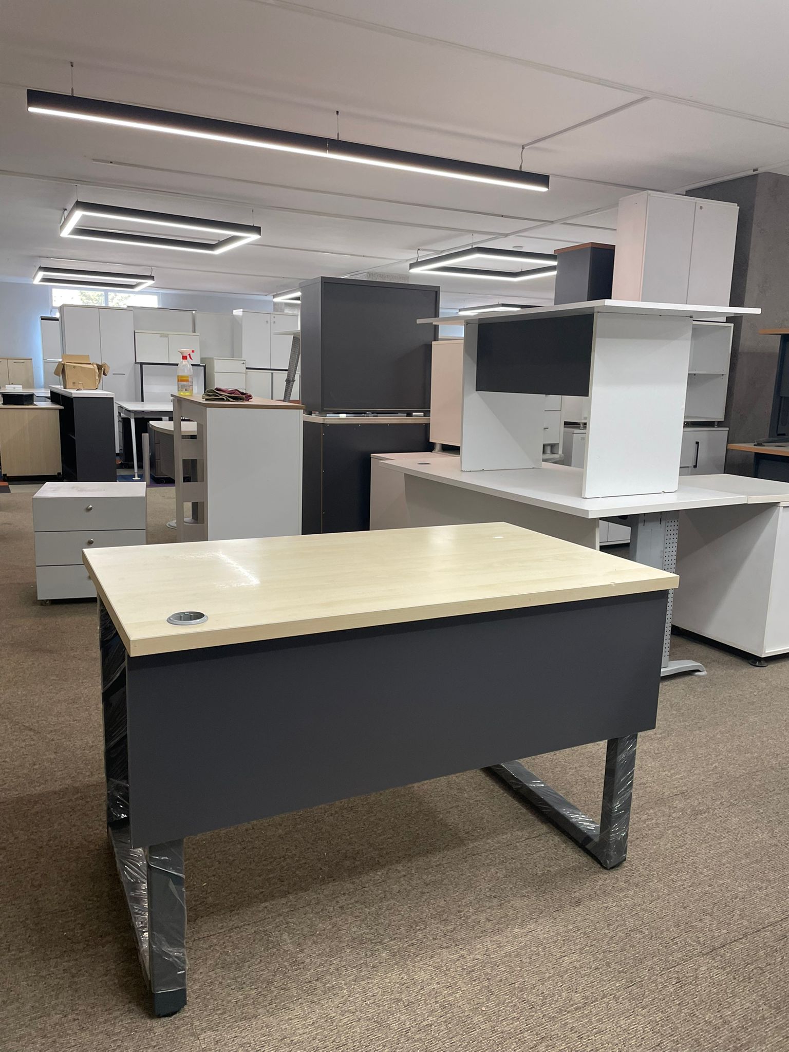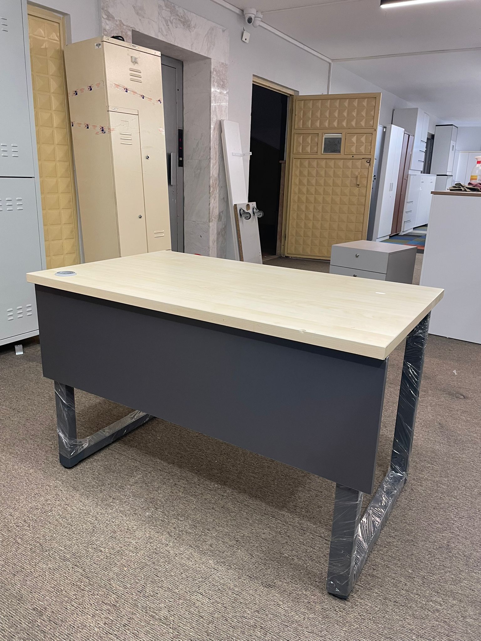 Açıklama: Antrasit gri ve akçaağaç renklerinin modern uyumunu sunan, şık tasarımlı bir çalışma masasıdır. Üst tablası ikinci el olmasına rağmen tertemiz ve bakımlıdır. Masanın taşıyıcı ayakları sıfır olarak takılmış olup sarsıntısız ve sağlam bir kullanım sunar. 120 cm genişliği ile hem bilgisayar hem de evrak kullanımı için ideal ölçülerdedir.