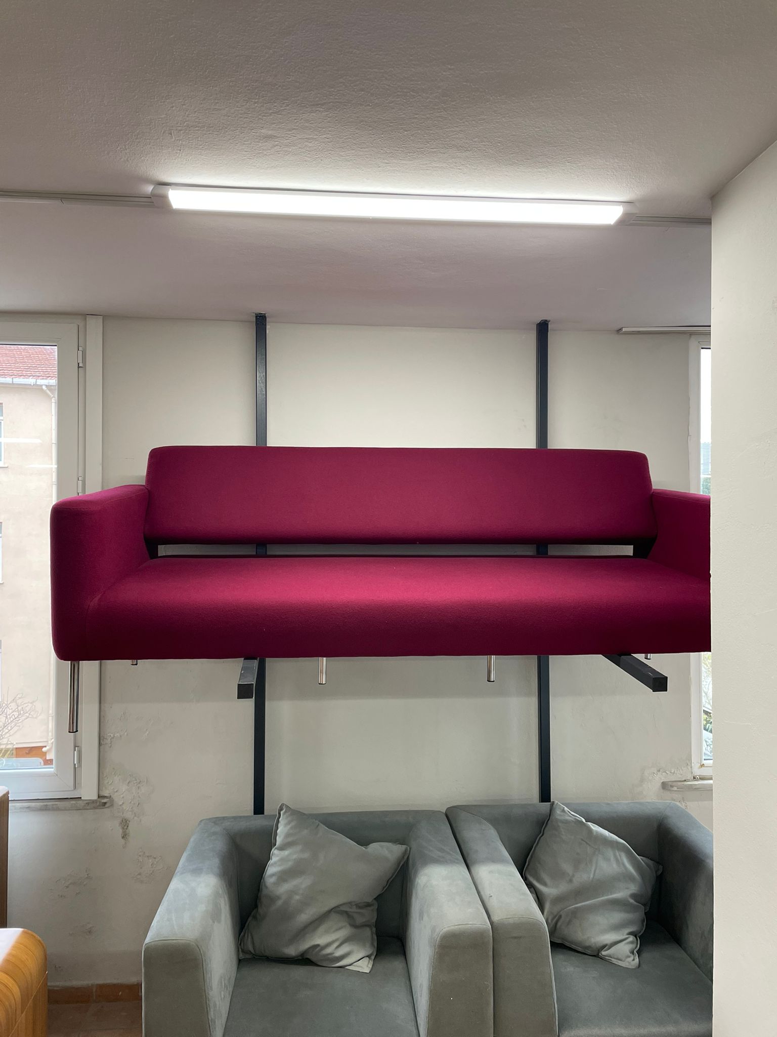 Açıklama: Bordo rengin ağırlığını ve profesyonelliğini yansıtan, geniş oturum kapasiteli 3’lü bekleme koltuğudur. Döşemesi temiz durumdadır ve iskelet yapısı oldukça sağlamdır. Ofisinizdeki boş alanları değerlendirmek ve misafirlerinizi konforlu bir şekilde ağırlamak için idealdir.