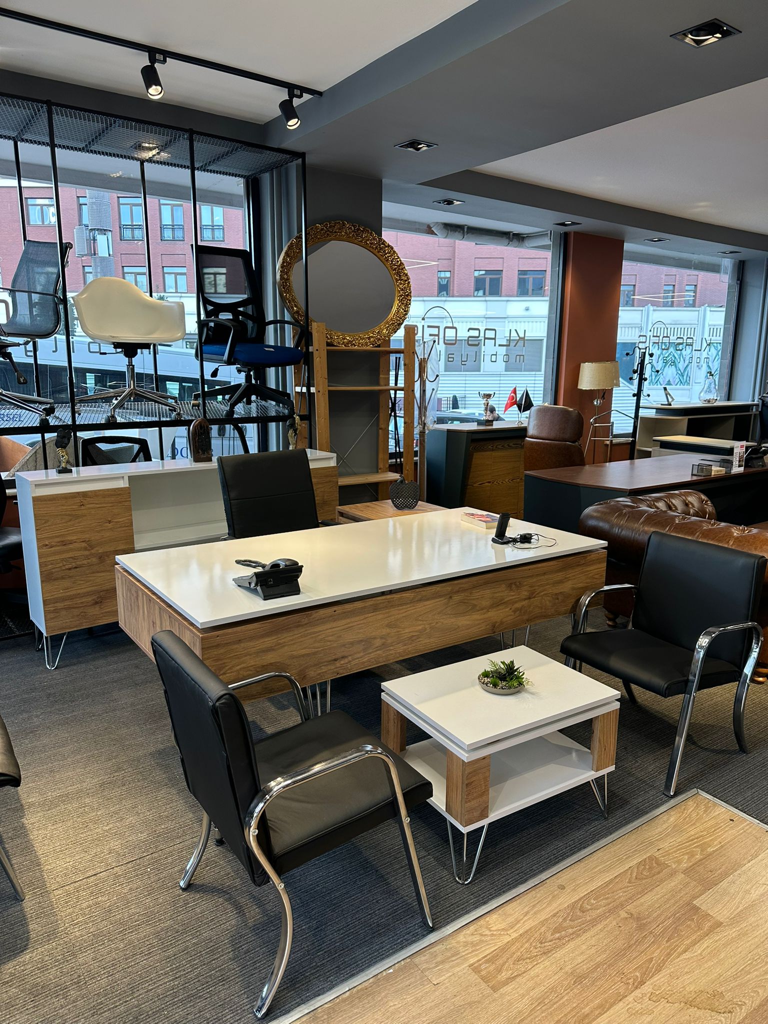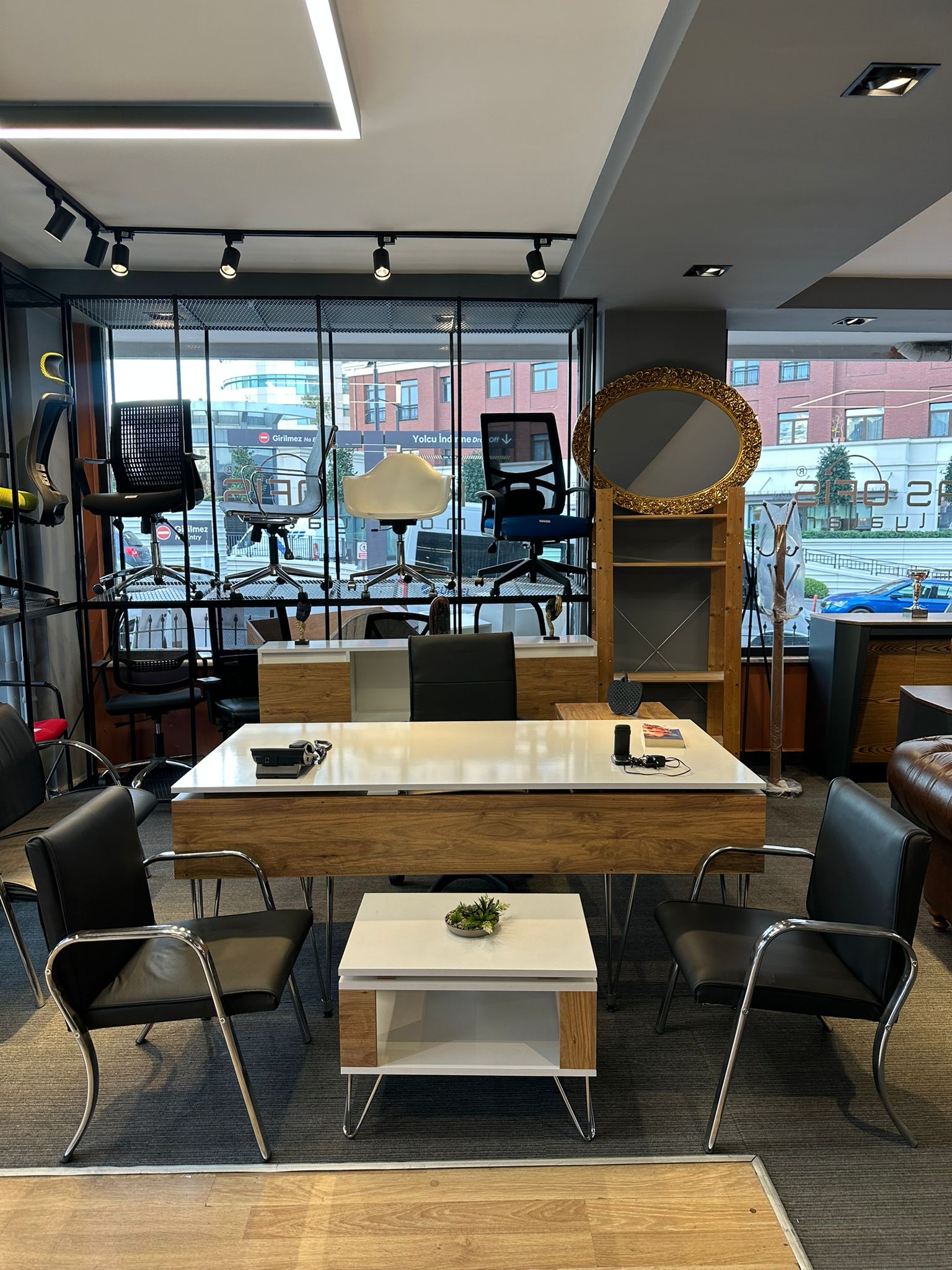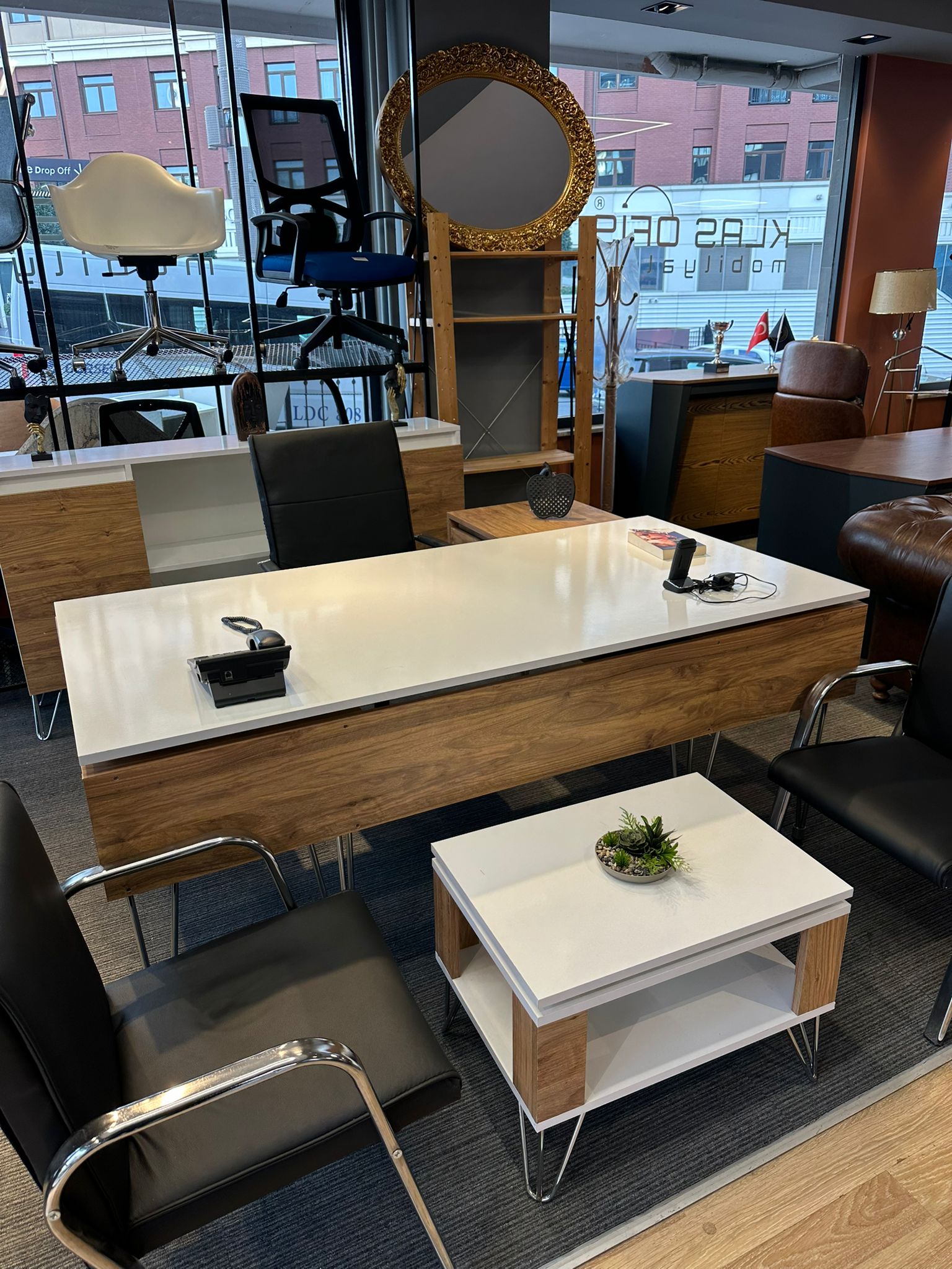 • Açıklama: Şık ve modern meşe renk makam takımı. Geniş yüzeyi, sağlam yapısı ve kaliteli işçiliğiyle ofisinizde prestijli bir görünüm sağlar. Yönetici kullanımına uygundur.